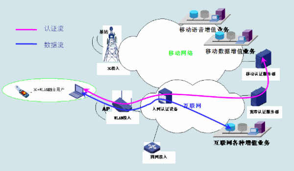 在WLAN與3G沒有融合之前,從WLAN接入的用戶只能訪問互聯(lián)網(wǎng)上的服務,不能進入移動網(wǎng)絡的封閉花園。在這種融合程度下,用戶一邊可以用WLAN高速上網(wǎng),一邊可以收彩信了。另外,隨著融合的深入,可以逐漸做到WLAN和3G兩種接入技術的無縫切換,從而保證業(yè)務的連續(xù)性。