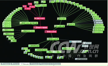 其次根據(jù)掌握的信息進(jìn)行建模。建模包括兩個(gè)方面,一是形成組件間的關(guān)聯(lián); 二是在關(guān)鍵組件上部署邏輯算法。邏輯算法也是根據(jù)業(yè)務(wù)邏輯和IT管理規(guī)則制定的。邏輯算法的應(yīng)用,極大地提高了根源問題定位的效率和準(zhǔn)確性。以西南區(qū)域郵件系統(tǒng)為例,影響西南郵件的因素有三類: 服務(wù)器、郵件應(yīng)用協(xié)議和關(guān)鍵鏈路。通常,當(dāng)連接某臺(tái)服務(wù)器的關(guān)鍵鏈路中斷時(shí),相應(yīng)的服務(wù)器及其上的協(xié)議也會(huì)顯示異常狀態(tài)。我們會(huì)看到大量告警節(jié)點(diǎn)和信息,無法判斷故障的根本原因。通過在關(guān)鍵點(diǎn)上設(shè)置邏輯算法,當(dāng)發(fā)生上述異常時(shí),只讓發(fā)生故障的關(guān)鍵鏈路節(jié)點(diǎn)變紅,而讓受之影響的服務(wù)器和協(xié)議節(jié)點(diǎn)處于靜默狀態(tài)(灰色顯示),從而使IT管理人員能夠直觀快速地判斷出故障的根源所在(如圖所示)。