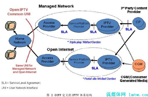系統(tǒng)能夠進(jìn)入大規(guī)模市場應(yīng)用。其“開放性”表現(xiàn)為標(biāo)準(zhǔn)和規(guī)范的開放性以及組織成員的開放性(對任何工業(yè)團(tuán)體開放)。作者預(yù)見不久的將來會有廣電運營商采用OIPF