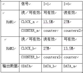RAM塊進(jìn)行乒乓方式操作信號的分配表如下: