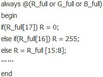 用以實現(xiàn)G、B的代碼與上面類似,在此不再贅述。以下代碼實現(xiàn)R_full*1/256功能。