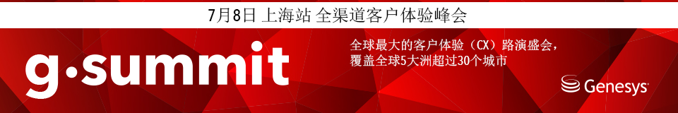 為了讓眾多客戶了解當(dāng)前客戶體驗(yàn)和服務(wù)的市場(chǎng)導(dǎo)向、技術(shù)創(chuàng)新和成功實(shí)踐, Genesys將在2016年7月8日(周五)假座上海浦東麗思卡爾頓酒店,舉辦G-Summit客戶體驗(yàn)大會(huì)。
