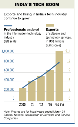 據印度軟件科技園的官員們介紹,在高科技中心班加羅爾,每周都會有兩三家西方公司的新業(yè)務在此開張,越來越多的公司將從軟件開發(fā)到企業(yè)后勤支持等工作外包給印度。