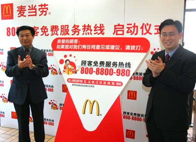 麥當(dāng)勞開通長(zhǎng)三角800顧客免費(fèi)服務(wù)熱線