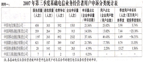 為加強社會監(jiān)督,推進電信服務(wù)質(zhì)量持續(xù)改善,根據(jù)《中華人民共和國電信條例》相關(guān)規(guī)定,現(xiàn)將2007年第三季度電信服務(wù)質(zhì)量有關(guān)情況公布如下。