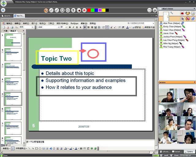 2.在多人會(huì)議的環(huán)境下,vzRoom同時(shí)支持多種實(shí)時(shí)信息分享,包括網(wǎng)頁、相片、文件、圖表和簡(jiǎn)報(bào)等,配合內(nèi)置畫筆功能,方便解說。