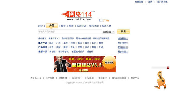 原網(wǎng)絡(luò)114 “轉(zhuǎn)讓”、“求購”、“招聘”、“應(yīng)急貼”、“商問”和“反查”等六大主打欄目不見了,取而代之的是“服務(wù)”、“場(chǎng)所”、“城市轉(zhuǎn)讓”、“城市活動(dòng)”、“城市人物”等五欄目。據(jù)了解,第六欄目‘城市批發(fā)’由于數(shù)據(jù)整理問題,不參加公測(cè),將被安排隨后直接上線,奧運(yùn)會(huì)帶來的巨大客流,對(duì)生活資訊黃頁的需求也隨之放大,巨大的需求也意味著生活資訊類網(wǎng)站巨大的發(fā)展機(jī)遇。7月初,谷歌把還處于測(cè)試期的生活搜索入口提到了中國首頁,與視頻、圖片、地圖等并稱谷歌中國八大重點(diǎn)業(yè)務(wù)之一。近日,雅虎口碑網(wǎng)也高調(diào)上線。