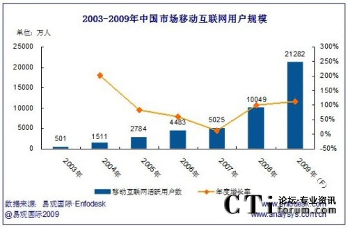 2009年中國市場移動互聯(lián)網(wǎng)行業(yè)收入規(guī)模將達(dá)388億,年增長率達(dá)111.78%。