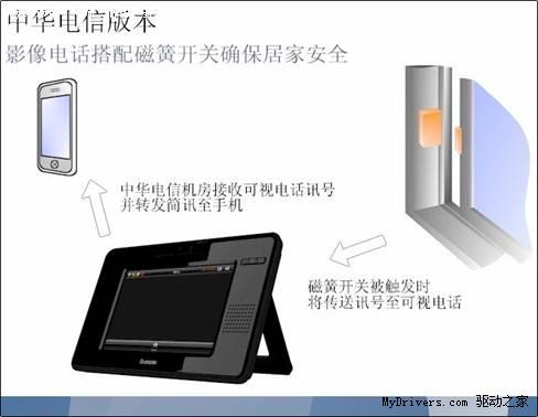 除多媒體服務(wù),AMOR8210內(nèi)建之千里眼服務(wù)更突破業(yè)界標(biāo)準(zhǔn)使其與磁簧開關(guān)整合提供居家安全嶄新服務(wù)。當(dāng)磁簧開關(guān)被觸發(fā)告警時(shí),AMOR8210攝影鏡頭將開啟錄像功能并上傳畫面且同步發(fā)送簡(jiǎn)訊至行動(dòng)電話通知使用者接著使用者可透過(guò)3G手機(jī)觀看錄像檔案或直接撥接AMOR8210進(jìn)行實(shí)時(shí)監(jiān)控。