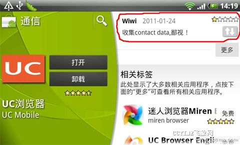 目前,很多手機社交應用中加入了對用戶關系的抓取,這些應用在用戶需要尋求社交關系時,將讀取用戶通訊錄中的信息,并進行自動匹配。其中包括手機廠商HTC的HTCSENSE,UCWEB中的UC樂園,以及最近火熱的kik類應用,如KikMessenger,米聊、微信等。多數(shù)用戶表示對于此種抓取通訊錄的行為表示疑慮。