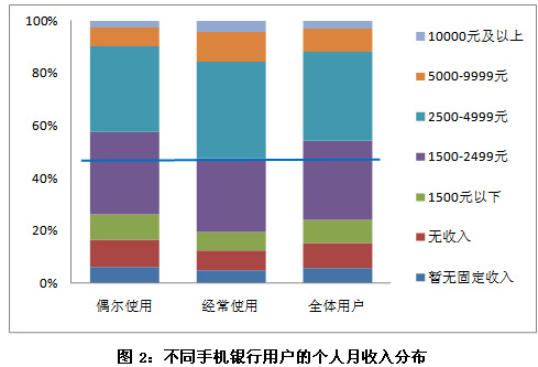 根據(jù)調(diào)查結(jié)果顯示,手機銀行業(yè)務(wù)在手機網(wǎng)民中的使用率有顯著提高,2010年7月的調(diào)查結(jié)果為36.8%,2011年2月已經(jīng)升至52.2%。同時,手機銀行業(yè)務(wù)開始逐漸向中年人群擴散,相對應(yīng)的,目前手機銀行用戶的個人月收入均高于去年7月用戶的收入水平。人群結(jié)構(gòu)的優(yōu)化,預(yù)示著手機銀行業(yè)務(wù)良好的發(fā)展前景。
