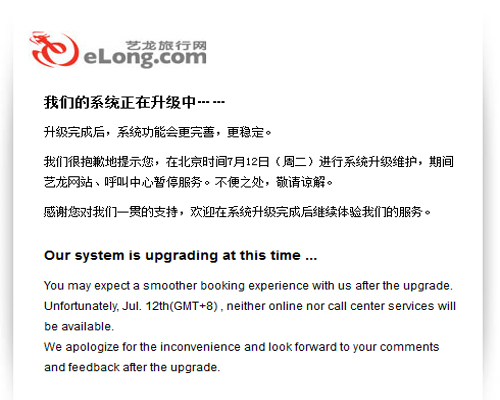藝龍?jiān)庥龃鎯收戏⻊?wù)中斷20小時 呼叫中心暫停服務(wù)