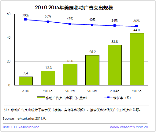 艾瑞:2011年美國(guó)移動(dòng)廣告支出規(guī)模將達(dá)12.3億美元