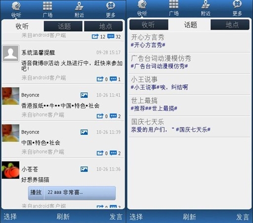 功夫,一直以來都是響當(dāng)當(dāng)?shù)闹袊。而從小就受到武俠文化熏陶的我們對于各種武功秘籍都是相當(dāng)向往的。其中,傳音入密和千里傳音作為武林人士內(nèi)功深厚的標(biāo)志,可是受到群眾的熱烈追捧。在科技發(fā)達(dá)的今天,語音微博為你帶上科技的翅膀,圓你一場武林高手夢。在為iPhone和Android用戶提供私信功能后,語音微博也為Symbian用戶提供了這項功能。