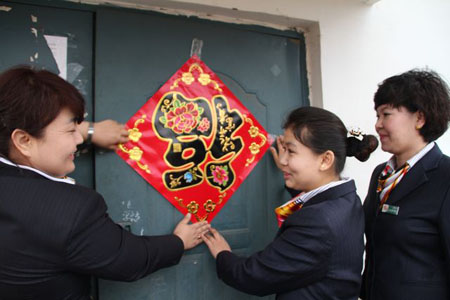 “阿姨,春節(jié)快到了,我們來(lái)看看您,前兩天已經(jīng)幫您把電充上了,這次給您帶了個(gè)手電,用著它以后到地下室可以照個(gè)亮。”隊(duì)長(zhǎng)阿依古麗向丁阿姨說(shuō)明來(lái)意,還跟丁阿姨試了試,手電是充電式的,不用換電池,丁阿姨挺高興的。臨走時(shí),阿依古麗還在她家門上貼了個(gè)大紅的“福”字,祝福老人家新年快樂(lè)。