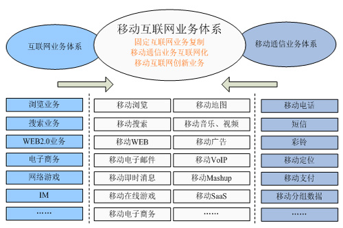 根據(jù)工信部相關(guān)信息,移動(dòng)互聯(lián)網(wǎng)的業(yè)務(wù)體系主要包括三大類,如下圖所示:一是固定互聯(lián)網(wǎng)的業(yè)務(wù)向移動(dòng)終端的復(fù)制,從而實(shí)現(xiàn)移動(dòng)互聯(lián)網(wǎng)與固定互聯(lián)網(wǎng)相似的業(yè)務(wù)體驗(yàn),這是移動(dòng)互聯(lián)網(wǎng)業(yè)務(wù)的基礎(chǔ)。二是移動(dòng)通信業(yè)務(wù)的互聯(lián)網(wǎng)化,如Skype推出的移動(dòng)VOIP業(yè)務(wù)、中國(guó)移動(dòng)的飛信業(yè)務(wù)等。三是結(jié)合移動(dòng)通信與互聯(lián)網(wǎng)功能而進(jìn)行的有別于固定互聯(lián)網(wǎng)的業(yè)務(wù)創(chuàng)新,這是移動(dòng)互聯(lián)網(wǎng)業(yè)務(wù)發(fā)展方向。對(duì)創(chuàng)業(yè)者而言,移動(dòng)互聯(lián)網(wǎng)的業(yè)務(wù)創(chuàng)新關(guān)鍵是如何將移動(dòng)通信的網(wǎng)絡(luò)能力與互聯(lián)網(wǎng)的網(wǎng)絡(luò)與應(yīng)用能力進(jìn)行聚合,從而創(chuàng)新出適合移動(dòng)終端的互聯(lián)網(wǎng)業(yè)務(wù),如移動(dòng)Web2.0業(yè)務(wù),如微博、移動(dòng)位置類互聯(lián)網(wǎng)業(yè)務(wù)等。