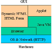 Dynamic HTML可以很好地進(jìn)行公開信息的發(fā)布,通過HTML Form機(jī)制可以從瀏覽器中得到用戶檢索等簡(jiǎn)單操作的輸入信息。對(duì)于無須身份認(rèn)證、訪問控制的內(nèi)容,在Web Server上可以使用通常的CGI技術(shù)獲取用戶的請(qǐng)求、查詢條件,通過Web Connector還可以使用應(yīng)用服務(wù)其提供的后臺(tái)服務(wù),結(jié)果使用HTML方式描述,并可直接回送到客戶端的瀏覽器。如果進(jìn)一步使用Applet技術(shù),還可以在客戶端實(shí)現(xiàn)更為友好的交互式顯示模式。無論是使用DHTML技術(shù)還是HTML Form加上Server方擴(kuò)展(如CGI, ISAPI, NSAPI, fastCGI和servlet等)。它們適合處理的業(yè)務(wù)都是每次請(qǐng)求/應(yīng)答基本獨(dú)立,相互無關(guān)聯(lián)的情況。對(duì)于一些更為復(fù)雜的應(yīng)用,要求前后操作具有相關(guān)性,客戶與服務(wù)器端各自保持狀態(tài)的變化且狀態(tài)是相關(guān)的。在這種情形之下,更好的解決方案是將客戶端的所有操作保持在一個(gè)Applet中完成,由Applet直接與Web Server交互數(shù)據(jù)來完成請(qǐng)求/應(yīng)答數(shù)據(jù)的交互。