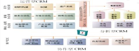 從上圖中不難看出,CRM的三種類型:運(yùn)營型、協(xié)作型、分析型。前兩種形式只是一些簡單的記錄,把銀行業(yè)所需要的客戶基本檔案的收集,非常簡單。真正能對(duì)銀行經(jīng)營產(chǎn)生效益在于分析型CRM,其重點(diǎn)在于對(duì)相關(guān)數(shù)據(jù)的分析與挖掘----BI,強(qiáng)調(diào)提供詳細(xì)分析。