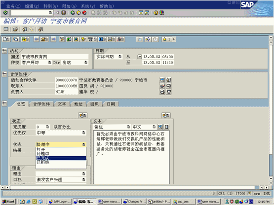 Explorer的層級樹結(jié)構(gòu)顯示客戶間的業(yè)務(wù)關(guān)系。通過報價菜單選項(xiàng)中預(yù)定義報價信息使用訂單輸入功能?梢赞D(zhuǎn)化成為訂單,后臺功能與SAPR/3集成可以實(shí)現(xiàn)。