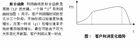 客戶利潤(rùn)曲線除了倒“U”形外,可能還有各種其它形狀。其它形狀CLP預(yù)測(cè)的關(guān)鍵是找到合適的客戶利潤(rùn)曲線擬合函數(shù)。為此公司需要建立一個(gè)客戶利潤(rùn)曲線擬合函數(shù)庫(kù),庫(kù)中存放各種形狀實(shí)際客戶利潤(rùn)曲線的擬合函數(shù)。當(dāng)客戶歷史利潤(rùn)曲線不符合倒“U”形變化規(guī)律時(shí),在庫(kù)中尋找新的擬合函數(shù)。如庫(kù)中沒有現(xiàn)成的滿足要求的擬合函數(shù),則建立新的擬合函數(shù),并加入庫(kù)中。擬合函數(shù)確定后,參照倒“U”形CLP的預(yù)測(cè)方法和步驟便不難算出當(dāng)前客戶的CLP。當(dāng)前分析型CRM系統(tǒng)具備的數(shù)據(jù)庫(kù)技術(shù)、數(shù)據(jù)挖掘技術(shù)、知識(shí)發(fā)現(xiàn)技術(shù)等有效的智能工具去識(shí)別客戶利潤(rùn)曲線,進(jìn)而確定擬合法中的各參數(shù),可以容易的計(jì)算出CLP。