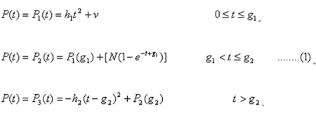 式中,P(t)為客戶第t個(gè)時(shí)間單元的客戶利潤(rùn)。P1(t)為一二次增函數(shù),表示客戶利潤(rùn)以一定的加速度(2h1)快速增加;P2(t)為一上漸近線函數(shù),表示客戶利潤(rùn)一直增長(zhǎng)但增長(zhǎng)越來(lái)越慢,且始終越不過一個(gè)利潤(rùn)最高限,最高限為(P1(g1)+N);P3(t)為一個(gè)二次降函數(shù),表示客戶利潤(rùn)以一定的加速度(2h2)銳減。參數(shù)v、h1、h2、g1、g2、N都是正常數(shù)。v是客戶第一次購(gòu)買帶給公司的利潤(rùn),通常這個(gè)值不高,甚至接近0(不考慮獲取成本,否則v常為負(fù)值)。h1、h2反映了客戶利潤(rùn)增長(zhǎng)和下降的加速度。g1、g2是利潤(rùn)曲線發(fā)生轉(zhuǎn)折的兩個(gè)時(shí)點(diǎn)。N是g1時(shí)點(diǎn)后利潤(rùn)總增幅的極限。