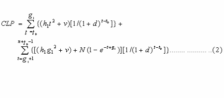 式中d為折現(xiàn)率,t0為CLP起始計(jì)算時(shí)點(diǎn),t0≤g1 。n一般取3-5年(因?yàn)榄h(huán)境變化太快,預(yù)測(cè)更長(zhǎng)時(shí)間的CLP無(wú)法保證其精度和可靠性),因而預(yù)測(cè)的CLP是未來(lái)一段時(shí)間的客戶利潤(rùn)而不是真正意義上的“全生命周期”客戶利潤(rùn),并且約定只要沒有明顯的趨勢(shì)表明客戶關(guān)系出現(xiàn)退化,就認(rèn)為客戶關(guān)系在這樣一段時(shí)間內(nèi)不會(huì)進(jìn)入退化期。