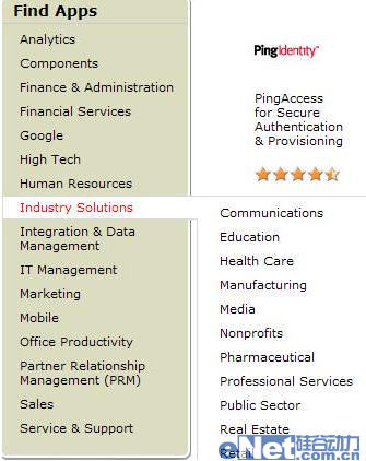 進入AppExchange應(yīng)用選擇界面,發(fā)現(xiàn)可供選擇的應(yīng)用非常多,我沒有詳細統(tǒng)計,但是估計至少有數(shù)百款的應(yīng)用可供選擇,范圍從分析、金融管理、金融服務(wù)、工業(yè)到銷售等等無所不包。AppExchange平臺真正把SaaS做出了CRM,全部企業(yè)軟件系統(tǒng)種類都可以在AppExchange中找到。