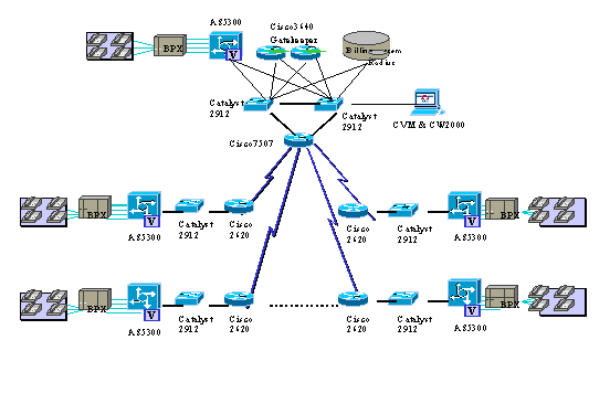 VoIP網(wǎng)關(guān)AS5300問世以來就可以支持兩個(gè)VoIP的中繼端口,在業(yè)界屬較高密度,而且99年年中就支持4個(gè)E1VoIP中繼端口。更主要的是AS5300具有Voice/Fax功能卡,能自動(dòng)識(shí)別Voice和Fax,與Voice和Fax要采用不通的功能卡的產(chǎn)品相比,等于容量更是提高。這些技術(shù)特點(diǎn)為該試驗(yàn)網(wǎng)工程的可擴(kuò)展性提供了較高的起點(diǎn)。