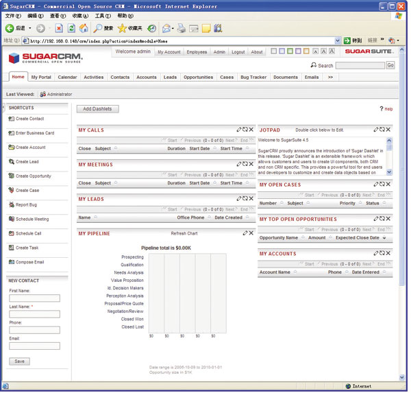 1.2.3中集成了最新的SugarCRM 4.5d版,提供的功能更加完整,穩(wěn)定性也更加出色。