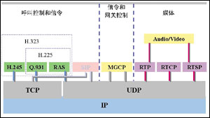 H.323和SIP都是呼叫控制和信令協(xié)議,它們的關(guān)系如圖所示。從圖上可以看出H.323協(xié)議和SIP協(xié)議處于相同的功能區(qū)間,但是又處于不同的范圍,因而各有特點(diǎn),又各自不同。
