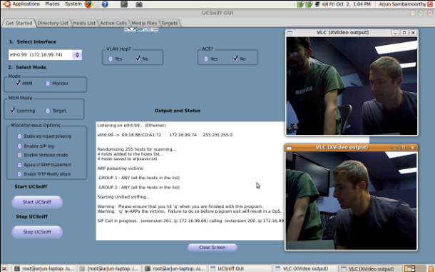 UCSniff的使用者界面,用戶可監(jiān)聽(tīng)通話,或者獲取IP-based視頻電話的畫(huà)面。