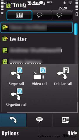 Fring是一款免費(fèi)的手機(jī)VoIP軟件,用戶可以使用這款軟件通過(guò)3G、EDGE、GPRS或WiFi連接網(wǎng)絡(luò),把Skype、MSN Messenger、Google Talk及ICQ等即時(shí)通訊系統(tǒng)中的好友整合到一個(gè)好友列表中,然后和他們打VoIP 電話或進(jìn)行即時(shí)通信。今天Fring宣布開(kāi)始支持Symbian智能手機(jī)使用該軟件和好友進(jìn)行視頻通話功能。