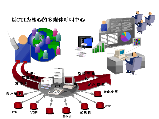 將企業(yè)現有的互聯(lián)網網頁服務與呼叫中心的電話服務相結合,在使企業(yè)有限的資源產生最大效益的同時,也極大地豐富了客戶服務的方式,形成綜合的客戶服務網絡,滿足客戶的需求。優(yōu)利公司提供的融合呼叫中心和互聯(lián)網技術的解決方案與其它解決方案不同之處在于:其以CTI技術為核心的多媒體呼叫中心解決方案在設計開始,就將普通的語音電話與各種互聯(lián)網通信方式進行統(tǒng)一處理,這一前瞻性設計思想,為呼叫中心與互聯(lián)網技術深層次結合奠定了基礎。