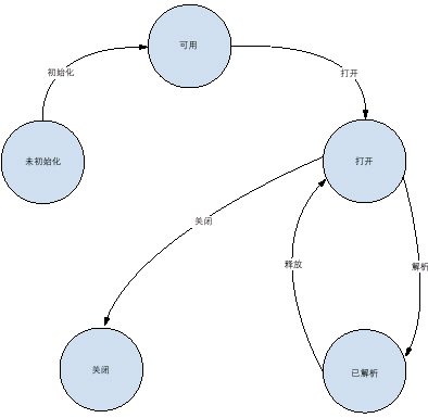 • 然后初始化DOM解析器,指定錯(cuò)誤處理程序,配置驗(yàn)證模式,此時(shí)進(jìn)入打開狀態(tài)。