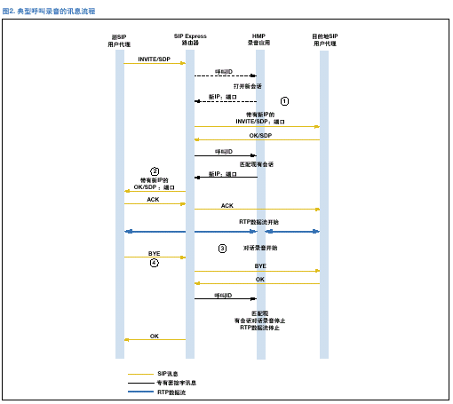 圖2. 典型呼叫錄音的訊息流程