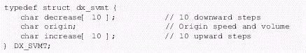 。。速度/音量條件塊(DX_SVCB)數(shù)據(jù)結構用于詳細說明一個播放文件的調節(jié)條件,根據(jù)這個條件,可以在重放前或者重放過程中按照用戶輸入的數(shù)字調節(jié)速度或者音量。
